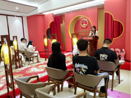 在婚姻登记现场,不仅洋溢着新人的甜蜜,还涌动着婚俗新风尚。常德市积极践行“简约而不简单、浪漫而不浪费”的新时代婚俗理念,创新融合“登记+婚庆+文旅”服务模式。活动现场,身着白色婚纱与大红国服的年轻新人,携手金婚、银婚夫妇代表,在亲朋好友的见证下,共同走过红地毯,齐声宣读《简约婚礼倡议书》,抵制高价彩礼、倡导文明婚俗,传递“爱情无价”的美好理念。