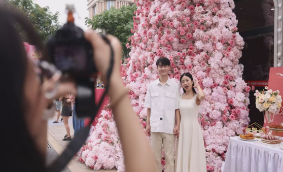 婚姻登记大厅内,缤纷的气球、喜庆的灯笼、娇艳的鲜花,将氛围烘托得格外温馨浪漫。新人们在婚事简办签名墙前郑重留下爱的印记,以简约而庄重的方式,开启人生新的篇章。