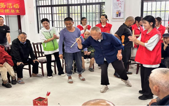 组织敬老院老人玩投壶游戏