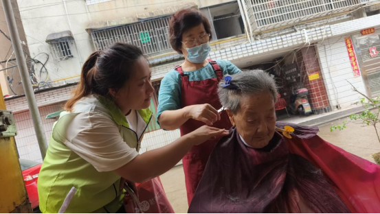 组织志愿者为百岁老人李奶奶上门理发
