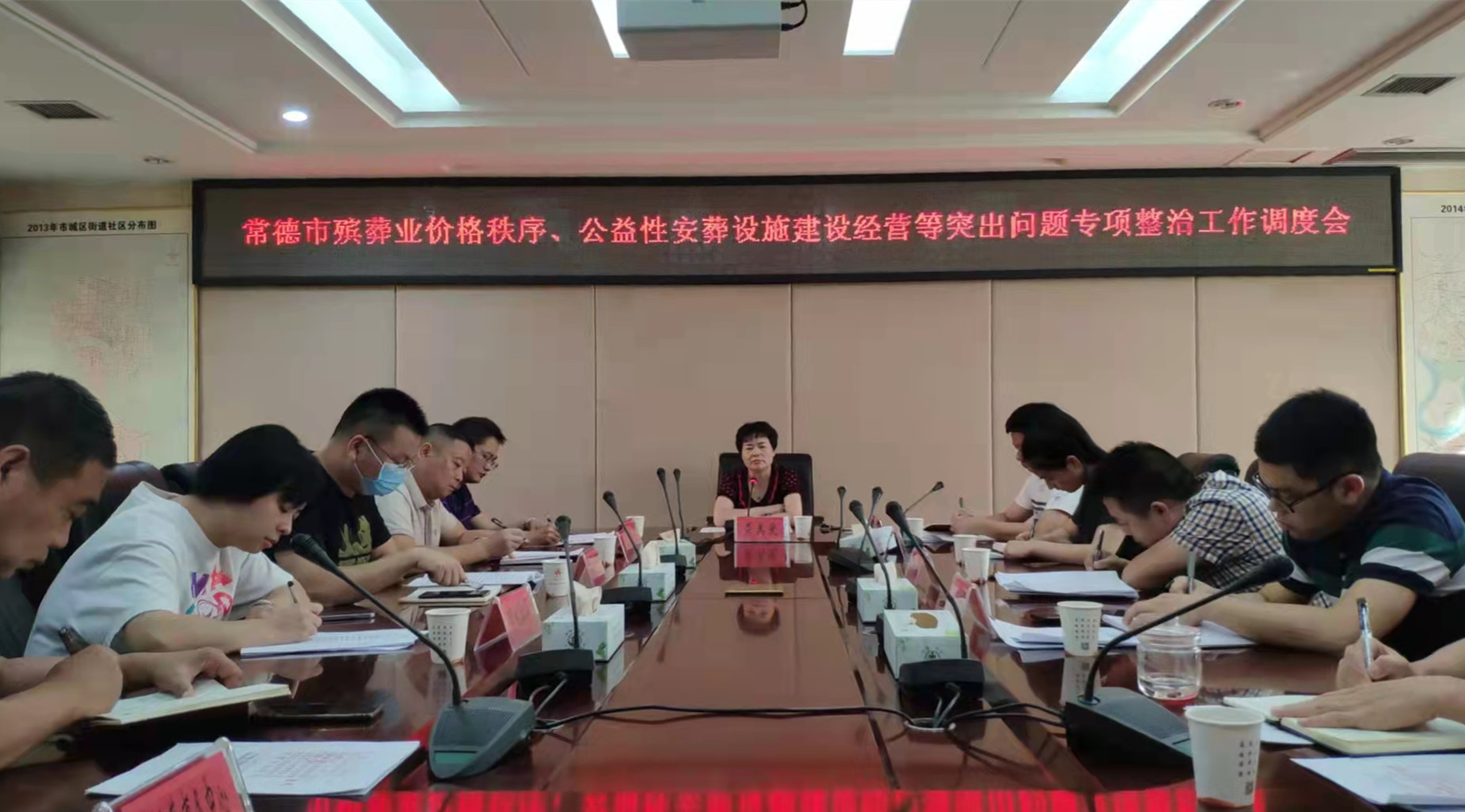 2021年9月23日,肉漫 、市发改委、市公安局、市自然资源局、市住建局、市卫健委、市市监局、市林业局八部门在肉漫 会议室召开常德市殡葬业价格秩序、公益性安葬设施建设经营及私建硬化大墓、活人墓专项整治工作调度会,会议对专项整治工作内容进行了讨论,各部门根据各自职能提出了很好的建设性意见。