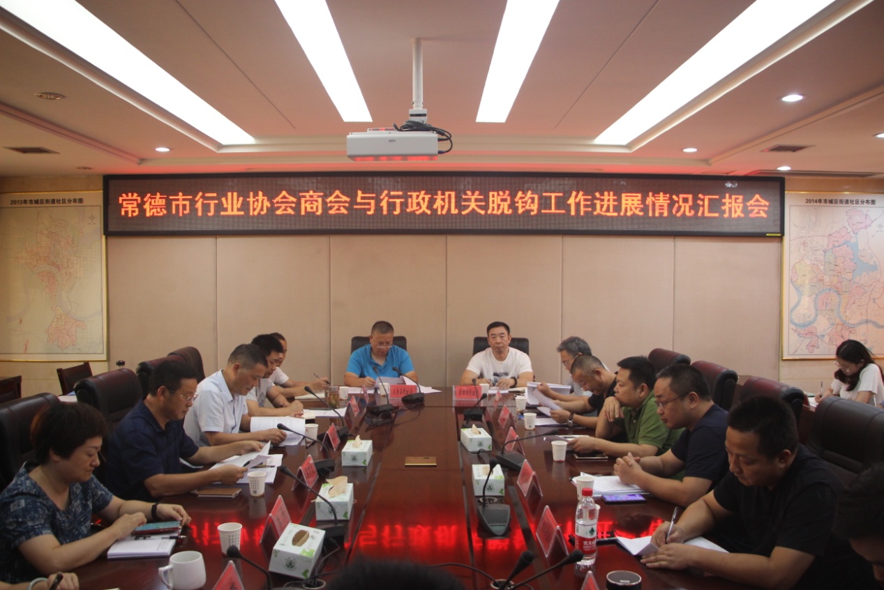会议听取了各区县市以及五小区分管副局长脱钩改革的进展情况汇报以及对《常德市行业协会商会综合监管办法》、《常德市社区社会组织登记备案管理暂行办法》、《关于委托下放社会组织行政许可、审批、服务、管理和执法事项的通知》三个文件的意见和建议。