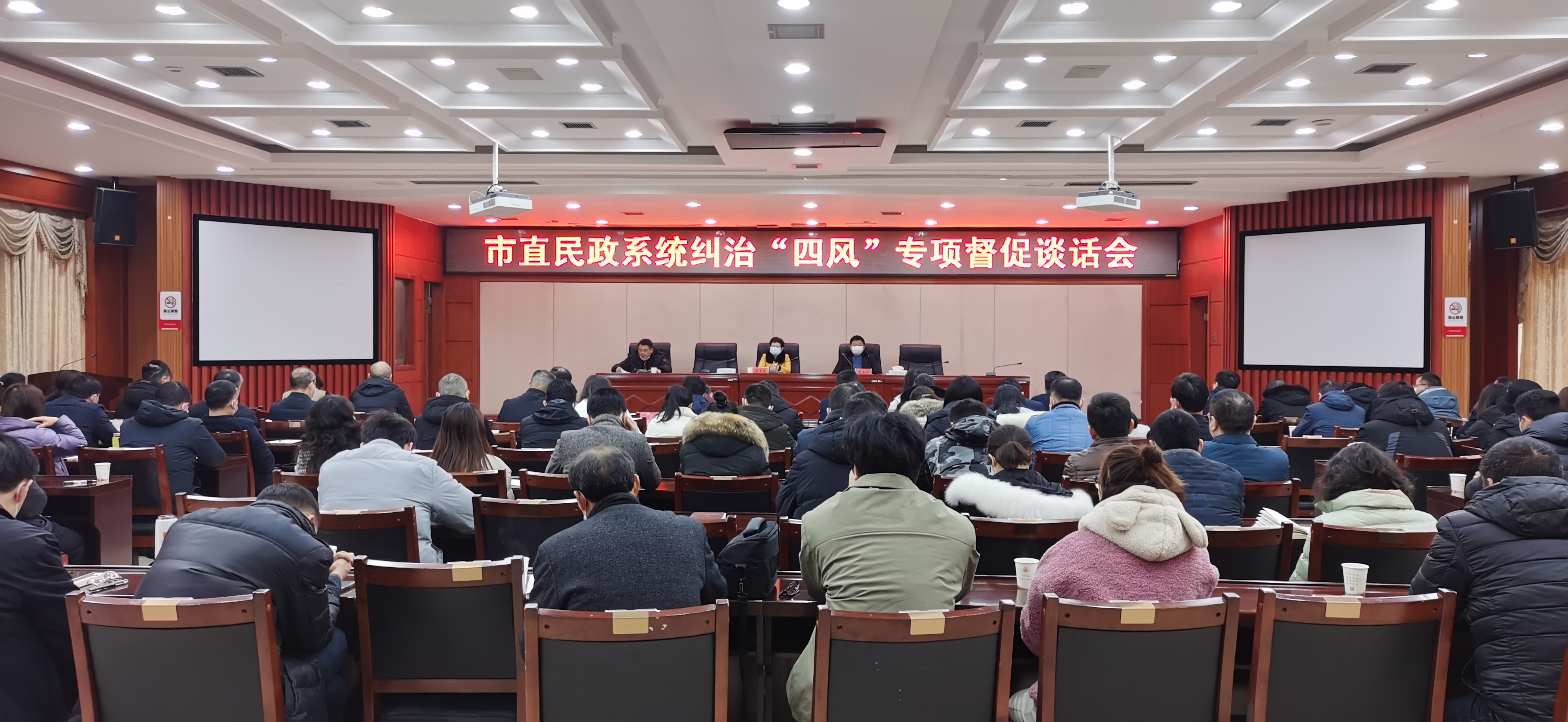 1月18日上午,肉漫 召开纠治“四风”专项督促谈话会。肉漫 机关全体干部职工、肉漫 直属单位班子成员参加。会议由肉漫 党组副书记、副局长殷宗仁同志主持。肉漫 党组书记、局长、二级巡视员龚美爱同志开展谈话。