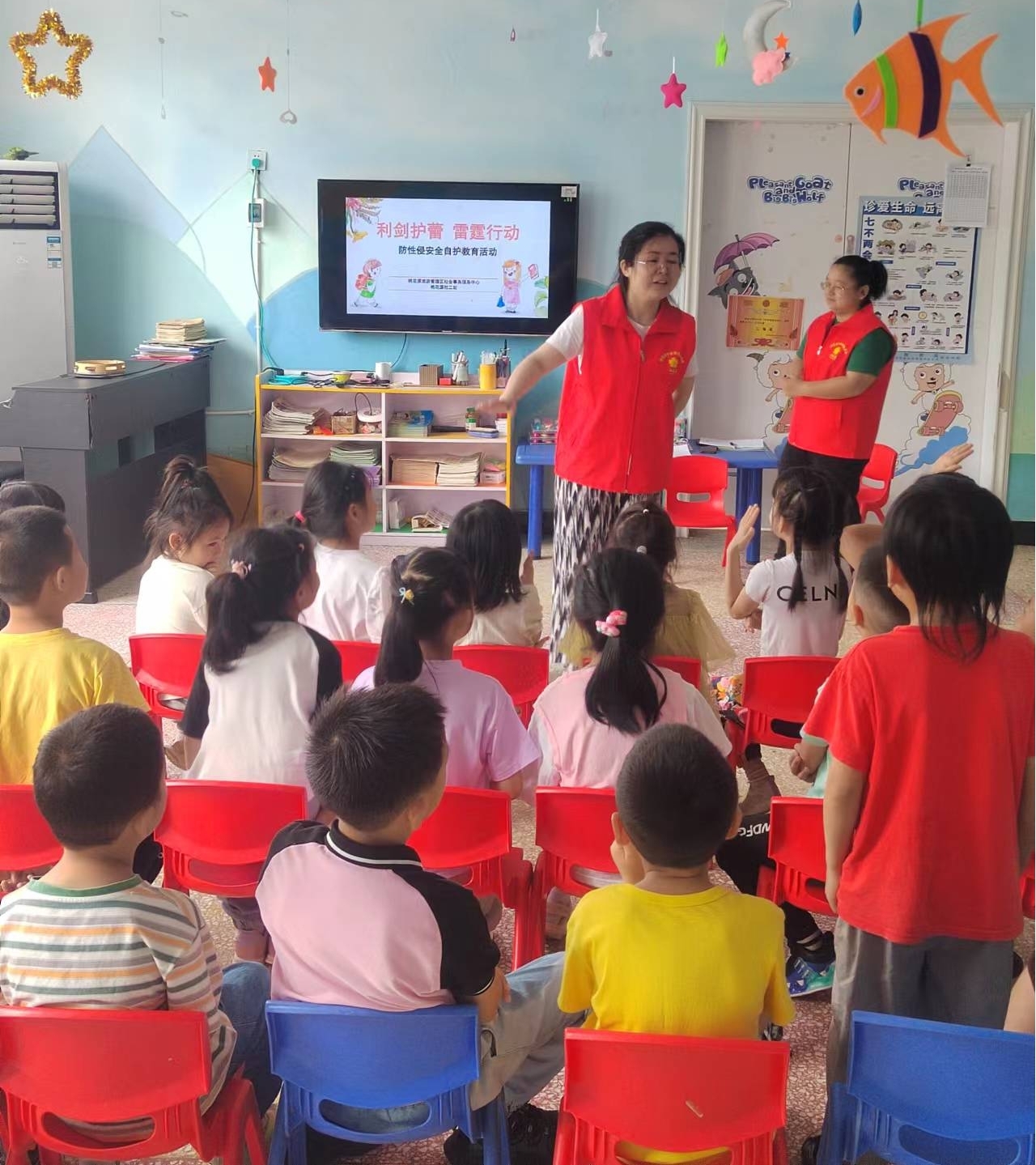 活动现场,社工通过PPT讲解防性侵、防溺水知识,向孩子们传授自我保护的知识和技巧,教导如何辨别和防范不良信息及行为。并通过互动小游戏和情景模拟的形式进一步加深孩子们对知识的运用和理解,身临其境地学习如何识别和应对各种潜在的安全威胁,在寓教于乐中提高了孩子们的自我保护意识和防止侵害的能力。