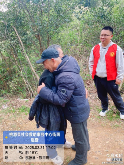3月28日,桃源县社会救助事务中心接到青林乡工作人员线索,在莫南回维村的山间发现一名男性流浪人员。该男子栖身于自制的鸟型帐篷中,衣衫褴褛、精神恍惚,无法清晰表述身份信息。社会救助事务中心主任葛胜辉带队赶赴现场,为其提供棉被、衣物等物资,并通过耐心沟通,从只言片语中捕捉到“汉寿”“崔家桥”等关键信息。