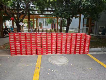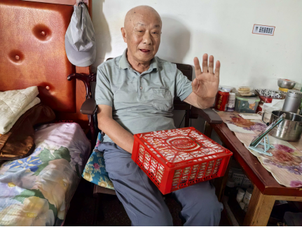 分发时,工作人员们两人一组,推着成箱的葡萄穿梭在宿舍楼里。每到一间房,大家都笑着打招呼,将葡萄稳稳放在老人床边的桌上。