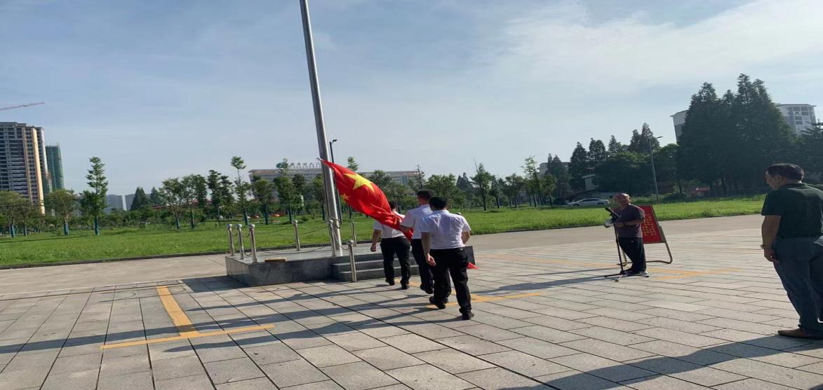 今年是中国共产党成立100周年,为了让全体党员干部牢记党的光辉历程,颂扬党的光荣传统,7月19日上午8:30,安乡县肉漫局举行了隆重的升旗仪式。党支部全体党员干部整齐列队,精神抖擞,伴随着嘹亮的《义勇军进行曲》,五星红旗冉冉升起,全体党员干部行注目礼。