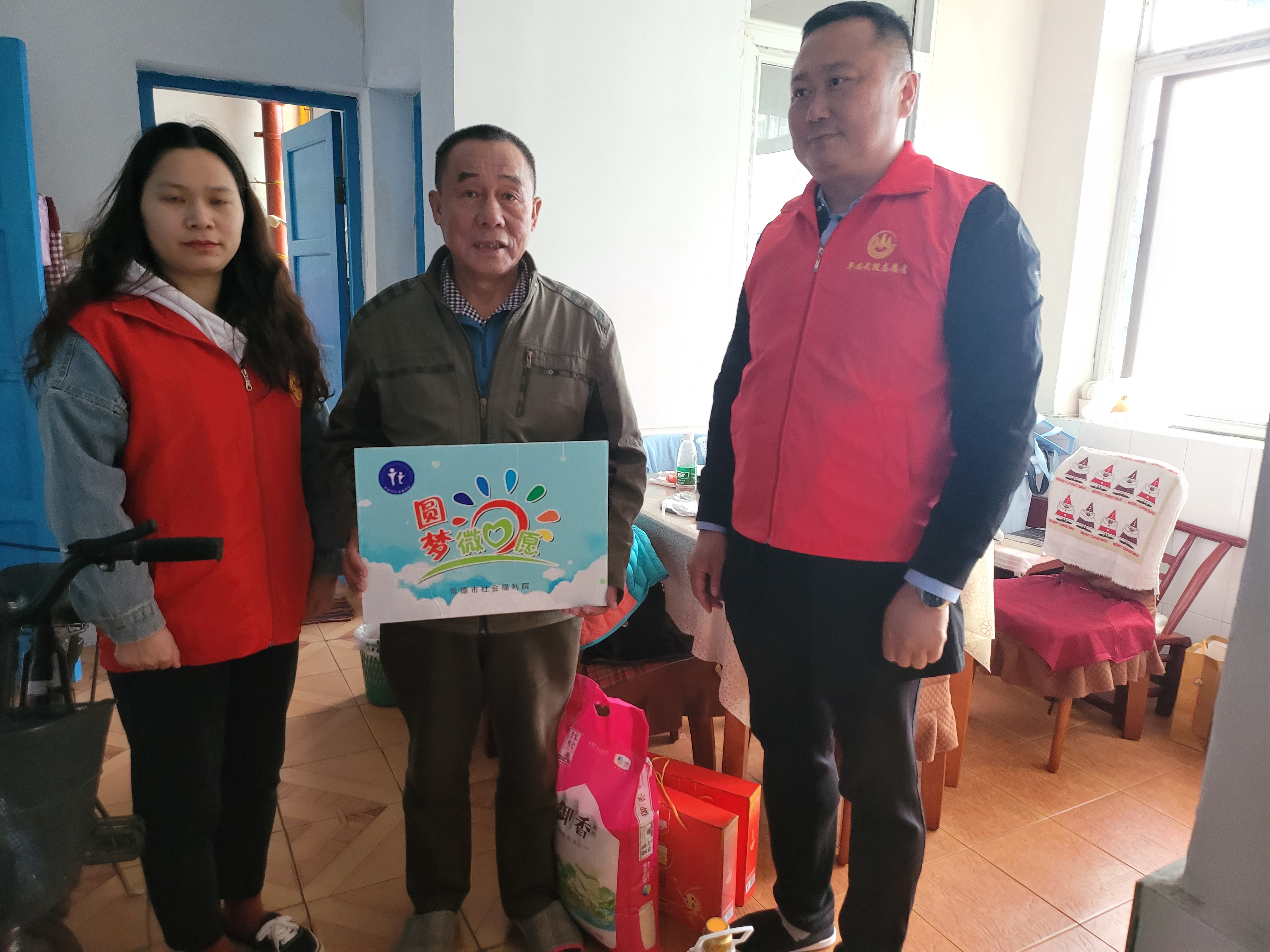 常德市社会福利院新任院长才忠波,在单位工作井然有序开展的同时,也不忘来到新河社区开展认领“微心愿”,真正把“我为群众办实事”实践活动落到实处。在社区工作人员的陪同下,志愿者上门慰问了“微心愿”——俞洪象家庭,为俞爷爷送上了米、面、油等生活物资。心愿虽然微小,但对这些经济困难的家庭来说无疑是雪中送炭,送到了心坎里,帮助解决了实际困难。