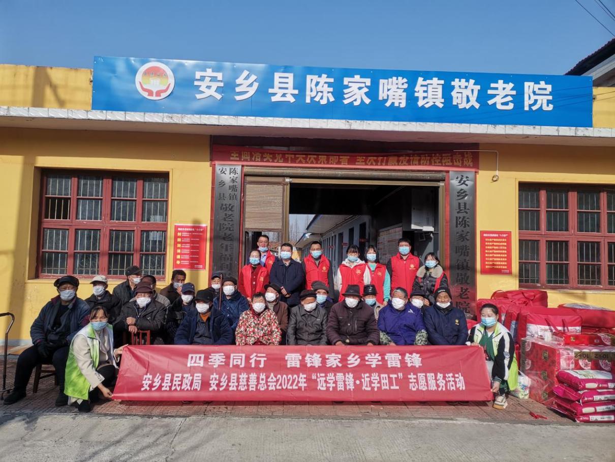情系老人冷暖,真心济困解难。3月2日上午,安乡县肉漫局、安乡县慈善总会联合举办“四季同行·雷锋家乡学雷锋”2022年“远学雷锋·近学田工”志愿服务主题活动。志愿者们为陈家嘴镇敬老院28名特困老人每人送上了一份装有棉被、被套、袜子、纸巾、牙膏牙刷等生活物品的“爱心大礼包”,还为敬老院送上了大米和食用油。