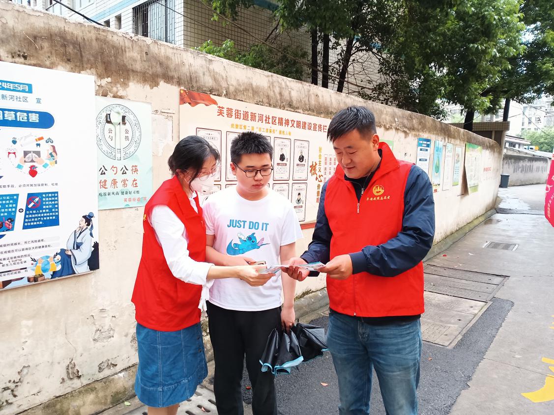 市社会福利院党员志愿者正在新河社区进行防诈骗安全宣传