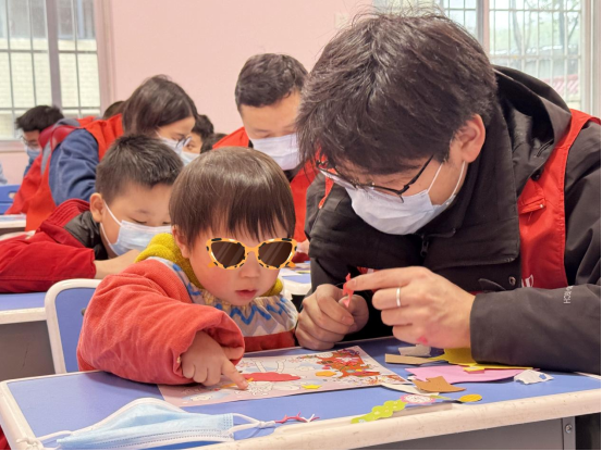 活动前,根据福利院儿童的特点,工作人员精心策划了一场关爱活动,旨在锻炼孩子们的反应能力、动手能力和团队协作能力。在“反应力游戏”环节,通过志愿者们的耐心引导,鼓励孩子们大胆表现,一来一往间初次见面的隔阂便消散不少,孩子们此起彼伏的笑声回荡在整个教室。在手工制作环节,志愿者和孩子们共同制作了“花篮”“手提包”“春景粘贴画”等童趣手工艺品。看着自己亲手制作的作品,孩子们脸上洋溢着自豪和喜悦的笑容。活动最后,志愿者们还为孩子们送上了精心准备的康复学习用品、零食等礼物,受到孩子们的热情回应。