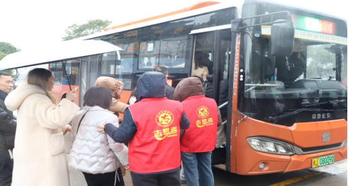 志愿者引导市民有序上车