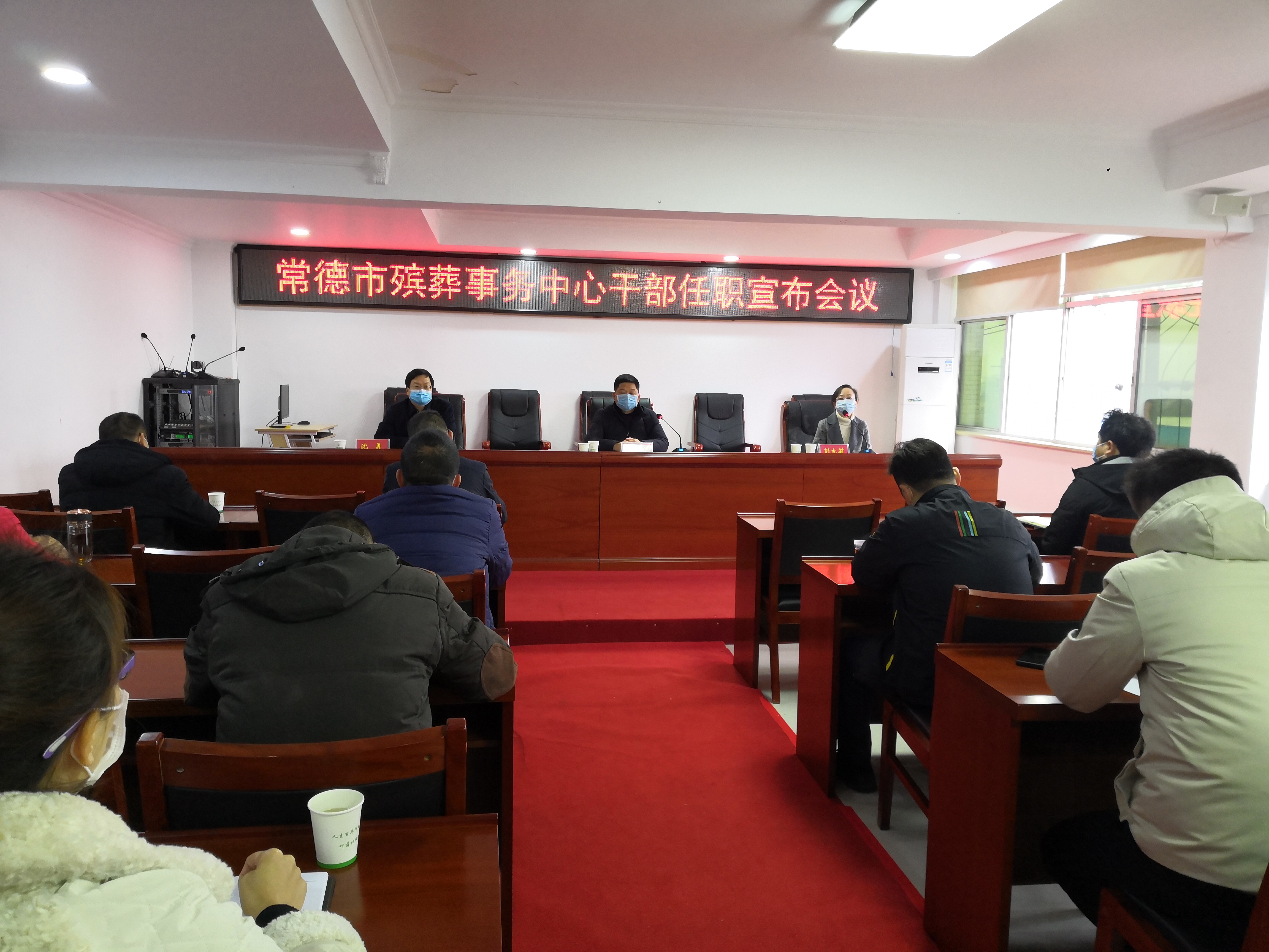 3月5日,常德市殡葬事务中心召开干部任职宣布会议,肉漫 党组副书记、副局长殷宗仁,党组成员、工会主席彭志莉、人事科长王曲和中心干部职工参加了会议。