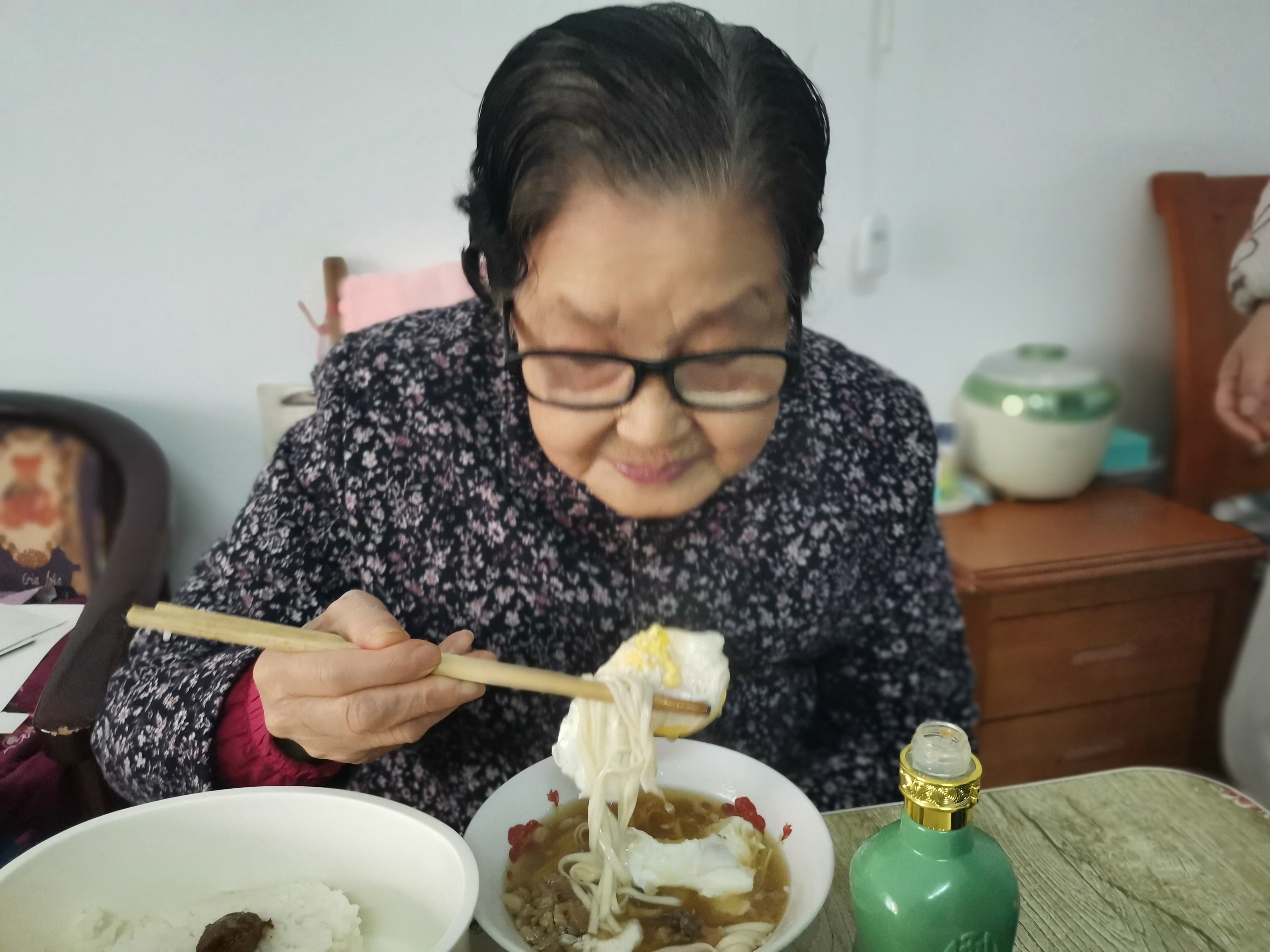 由于封闭无法外出购买生日蛋糕,工作人员开动脑筋,一边为老人精心制作生日贺卡,表达对老人的祝福,一边去厨房为老人准备长寿面和荷包蛋。一切准备就绪后,工作人员踏着《生日歌》走进房间,并祝愿刘奶奶生日快乐,福如东海长流水,寿比南山不老松。刘奶奶开心极了,满满一碗长寿面吃了大半碗。为了让家属放心,工作人员又以视频的方式让家属也参与其中,陪伴老人,为她庆生。刘奶奶在视频中看到自己的家人,既感受到福利院对她的关爱,也感受到了家人的陪伴,奶奶脸上洋溢着幸福的笑容。刘奶奶的儿子给奶奶送上生日祝福,并诚恳地说道:“在这个抗击疫情的特殊时期把老人交给你们照护,我们很放心!我代表家属对你们表示衷心的感谢!”