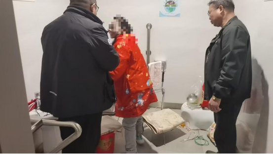 12月12日清晨,工作人员在常德火车站停车场巡查时,发现一名女性流浪人员将自己反锁在无障碍卫生间内。经过十多分钟的耐心沟通,该流浪人员终于开门。在公安机关协助下,工作人员迅速查明其户籍,了解家庭情况。随后,工作人员将丁某接回中心,为其换上干净保暖的棉衣,再安排专人护送返乡,交由村干部妥善安置。