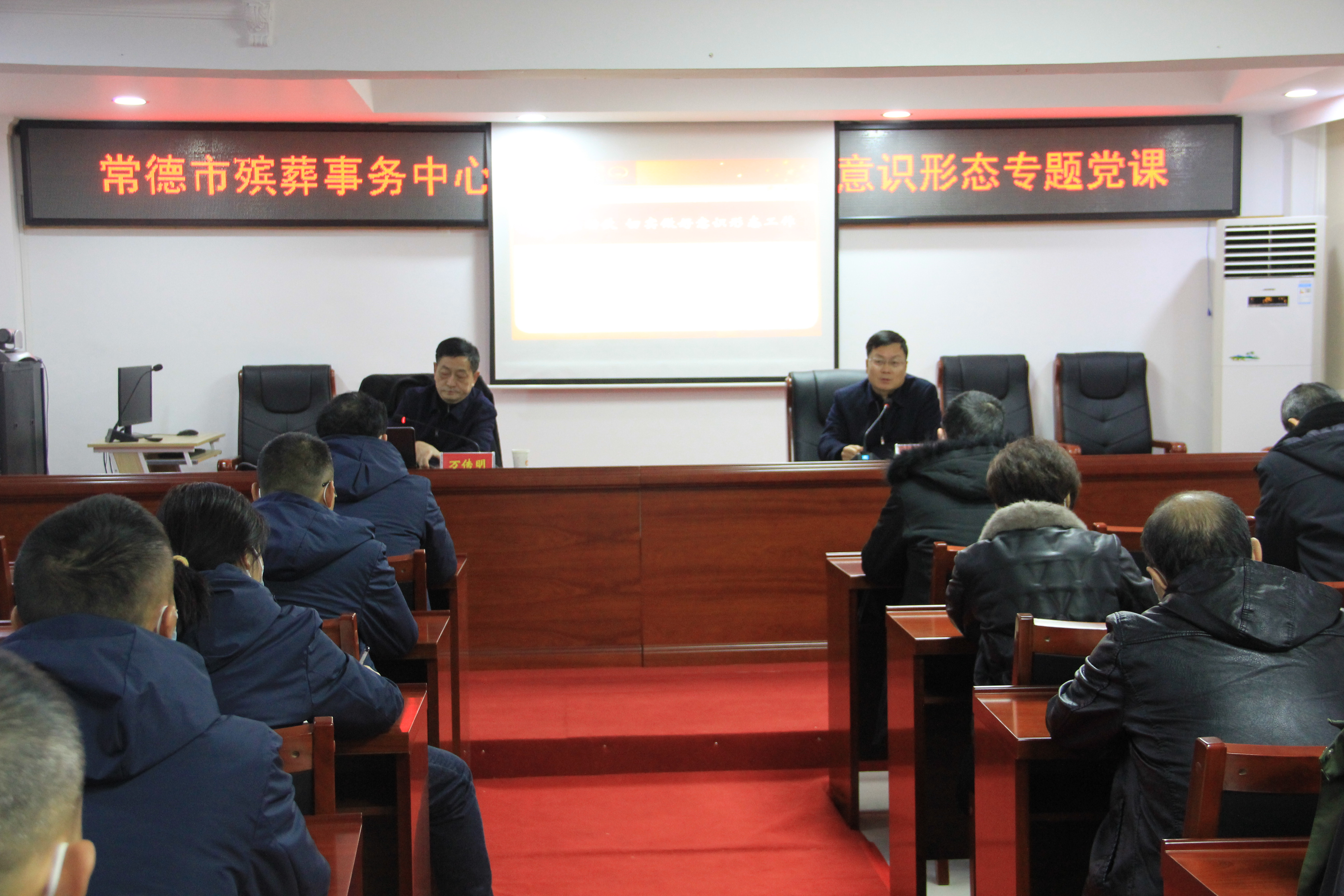 12月11日,常德市委党校原副校长 、一级调研员、副教授万传明来到市殡葬事务中心,用生动儒雅 、风趣幽默的语言,以“打好主动仗,切实做好意识形态工作”为主题,从三个方面给干部职工上了一堂意识形态专题党课 。